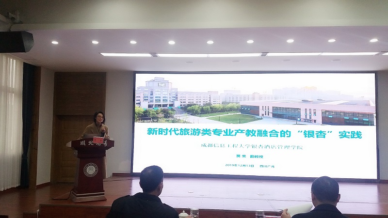 2019年12月12日—12月13日,我院旅游管理系副主任贾荣受邀前往广元,参加了在川北幼儿师范高等专科学校举行的“教育·人才·产业·创新”——2019广元旅游产教融合发展对话论坛”并作主题报告。广元市政府副市长吴桂华出席论坛开幕式并讲话,广元旅游产教联盟理事长、川北幼专党委副书记、校长张廷鑫教授致辞,联盟秘书长、川北幼专党委委员、副校长蒲远波主持论坛开...